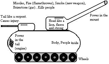 9:7. AND THE SHAPES OF THE LOCUSTS WERE LIKE UNTO HORSES PREPARED UNTO (or outfitted for)